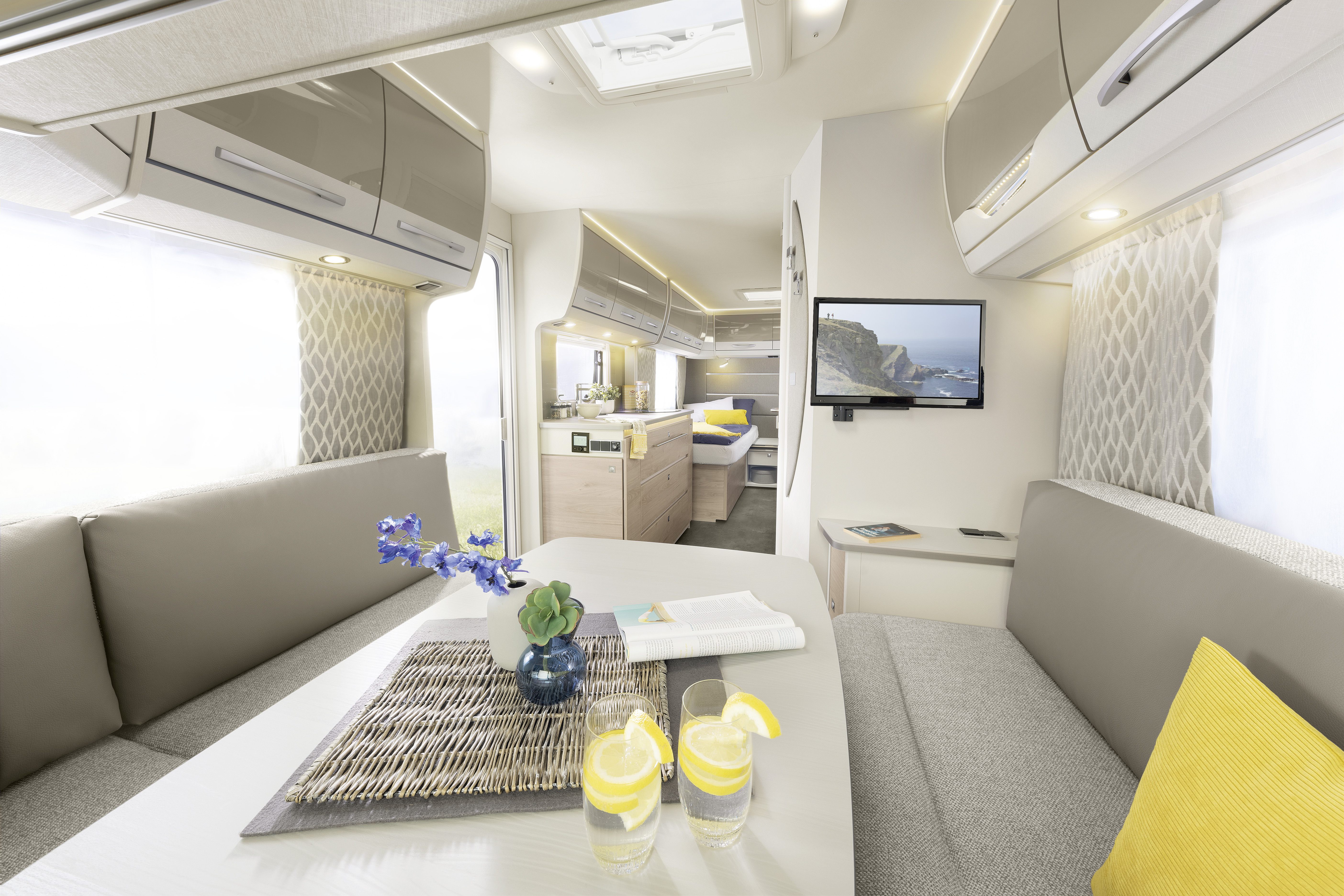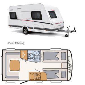 * Masse in fahrbereitem Zustand beinhaltet das Leergewicht des Fahrzeugs und folgende Grundausstattung: eine 11-kg-Gasflasche, Sonnendach, Auffahrtkeite, Sanitärflüssigkeit und eine Kabeltrommel.